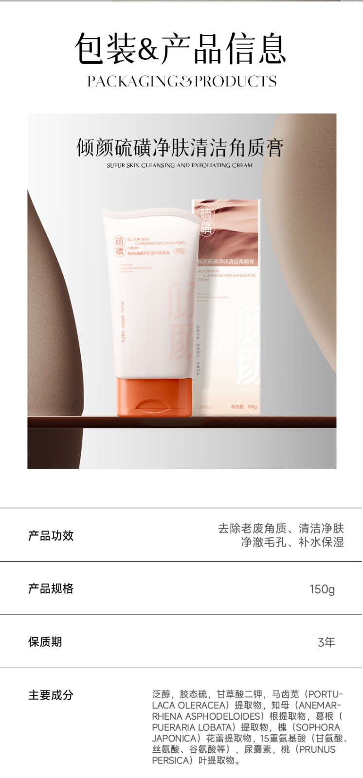 产品名称:倾颜硫磺净肤清洁角质膏