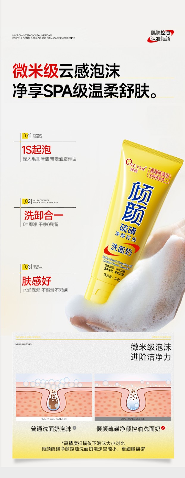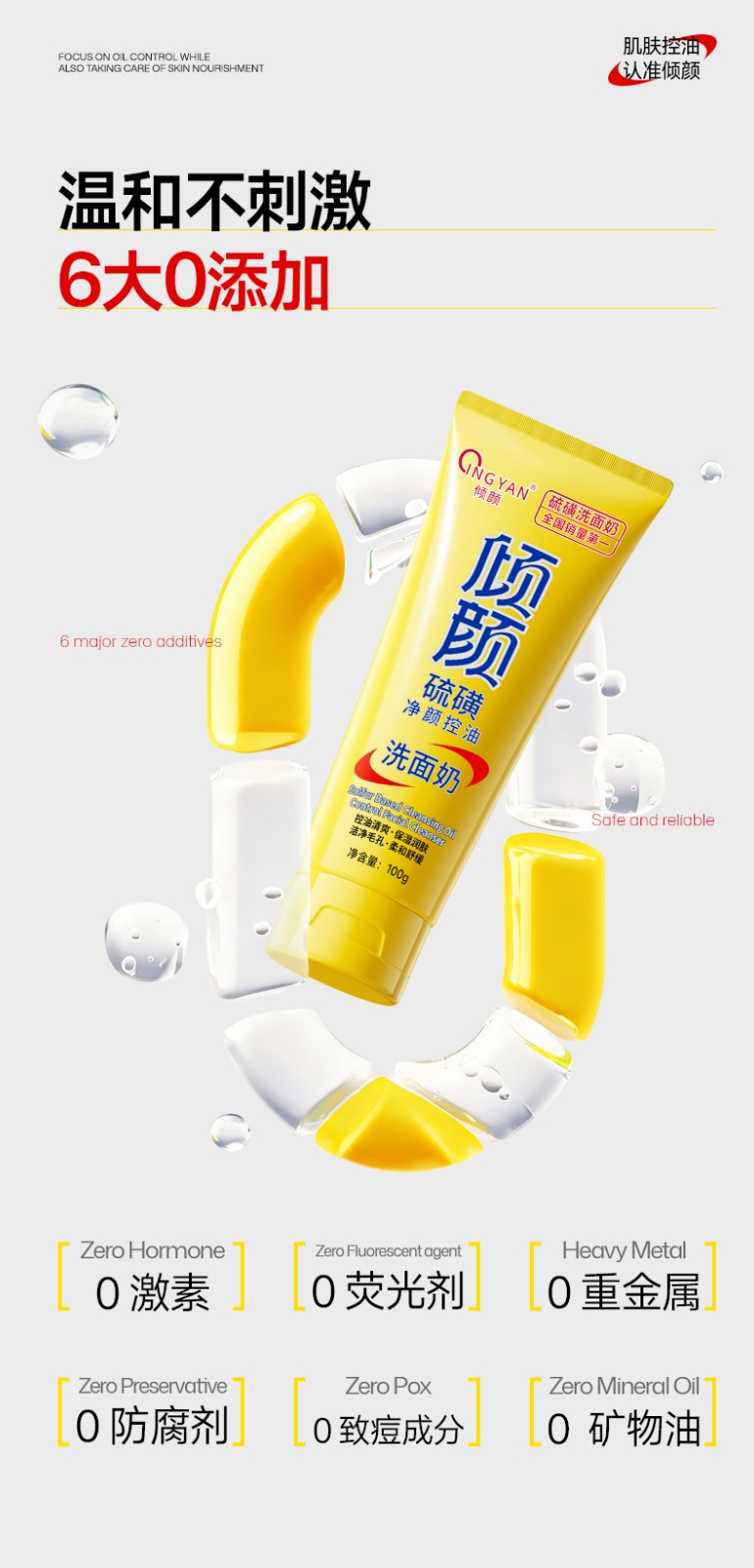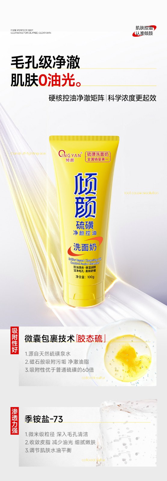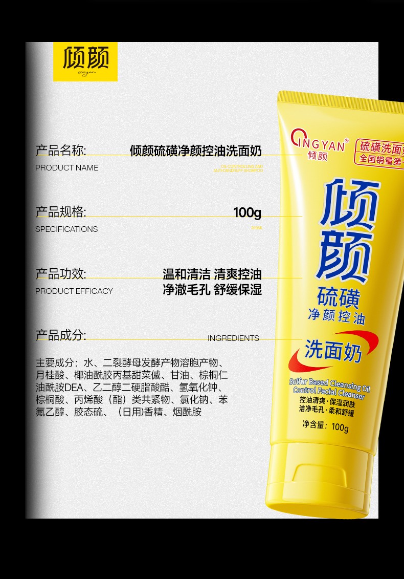 产品名称:倾颜硫磺净颜控油洗面奶