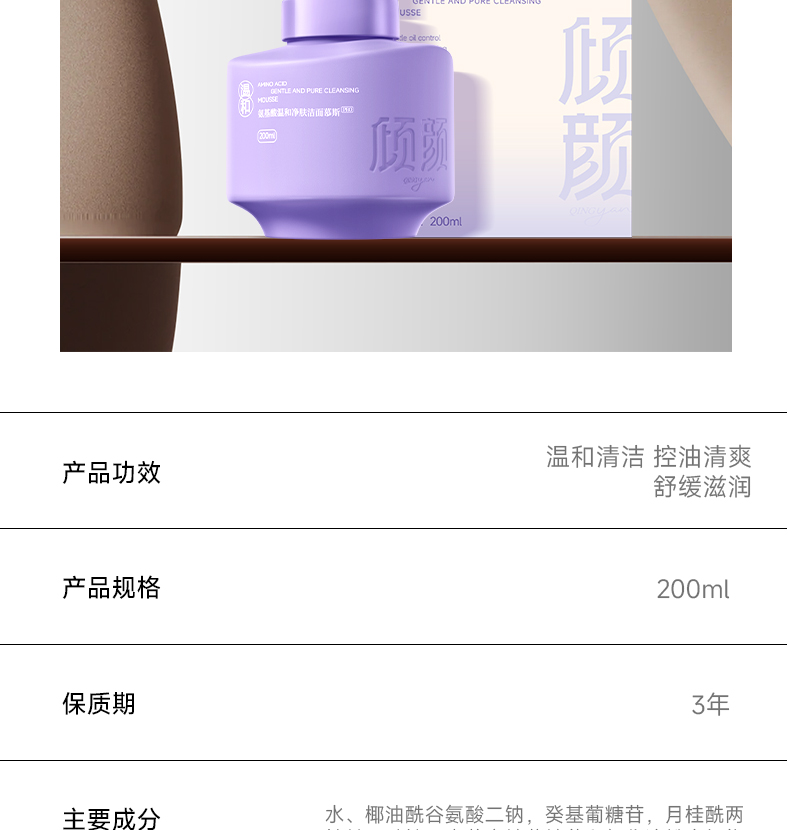 产品名称:倾颜氨基酸温和净肤洁面慕斯PRO