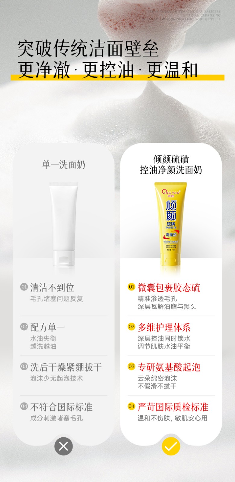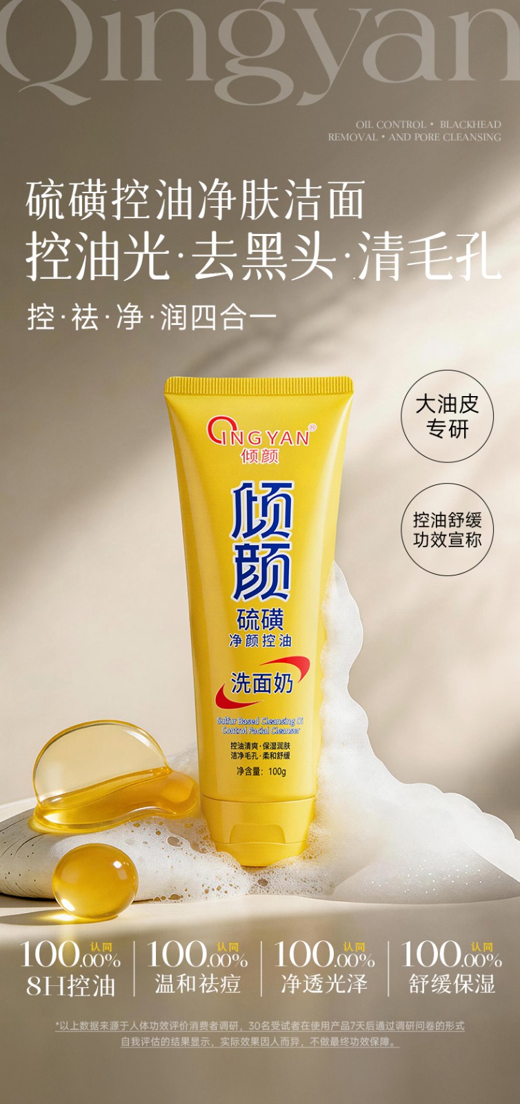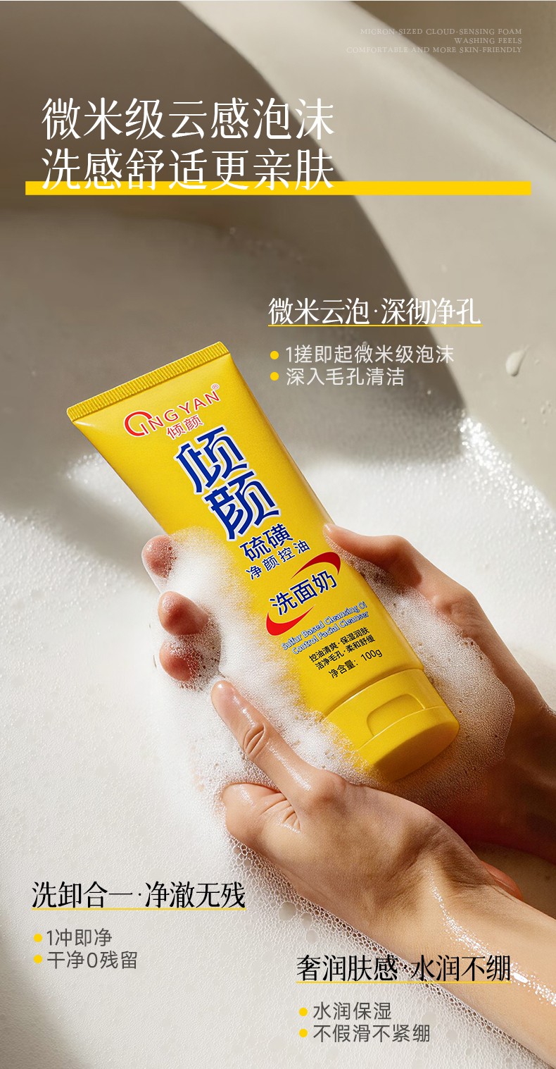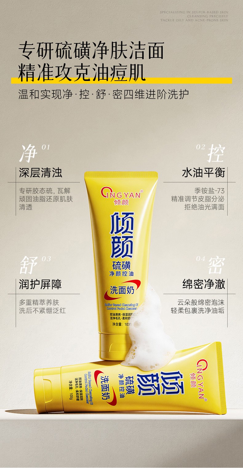 产品名称:倾颜硫磺净颜控油洗面奶